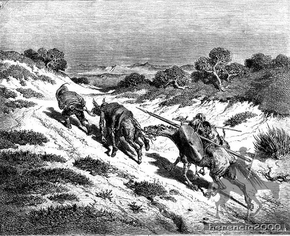 –Siempre deja la ventura una puerta abierta en las desdichas, para dar remedio a ellas –dijo don Quijote–. Dígolo porque esa bestezuela podrá suplir ahora la falta de Rocinante, llevándome a mí desde aquí a algún castillo donde sea curado de mis feridas. Y más, que no tendré a deshonra la tal caballería, porque me acuerdo haber leído que aquel buen viejo Sileno, ayo y pedagogo del alegre dios de la risa, cuando entró en la ciudad de las cien puertas iba, muy a su placer, caballero sobre un muy hermoso asno.